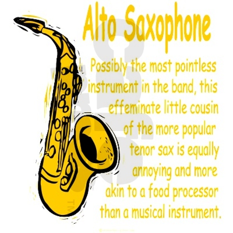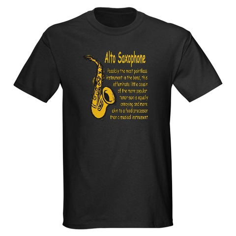 For this first installment of interesting on-line sources of saxophone gifts, I offer up: CafePress Canada: The world’s favorite place to find or make unique T-shirts and gifts.™. Entering saxophone into CafePress Canada’s search engine will net you an astounding 2,300 saxophone designs that are available on 67,700 products. 😯