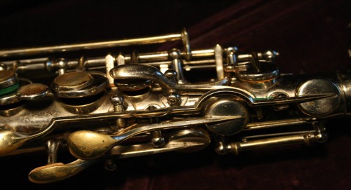 I also have my doubts about the dating of this instrument for two reasons — the automatic octave pip switching (which wasn’t fully embraced until c. 1914, at least in the U.S.), and the front F key. I do not know when the front F was first offered, but I know it’s MISSING from a lot of horns as late as the late 1920s.