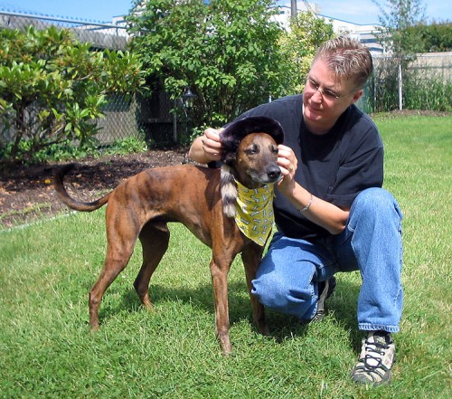 Buddy was a rescue dog who I took in from the Fredericton SPCA, when he was found running loose in downtown Fredericton in the middle of the coldest December in years. At the time the staff believed him to be a whippet, which is why I was called. I was known to be a sight hound person—borzoi specifically—and so they thought I might want to adopt him.