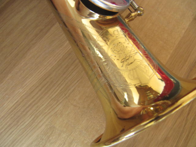 The cheap, Asian-made, Klingson model saxophones that Hammerschmidt currently sells, have this laser engraving on the front of them bell.