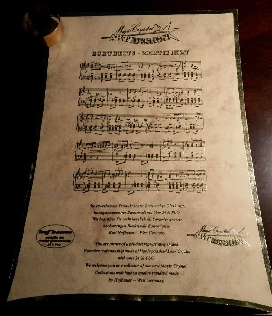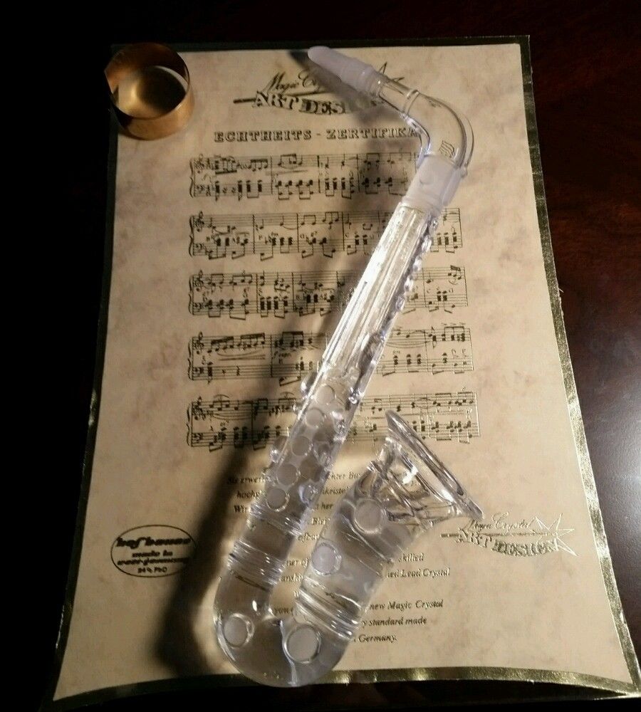 FOR SALE IS THIS WONDERFUL RARE LIMITED VINTAGE HOFBAUER CRYSTAL SAXOPHONE.  THIS IS AN IDEAL GIFT FOR ANY MUSIC OR JAZZ LOVER. CONDITION IS VERY GOOD.  MADE IN WEST GERMANY WITH OVER 24% LEAD CONTENT, CLEAR CRYSTAL WITH FROSTED ACCENTS. THIS DELIGHTFUL ITEM MEASURES 9 INCHES LONG.  THE ORIGINAL SCROLL CERTIFICATE OF AUTHENTICITY WITH BRASS SCROLL HOLDER IS ALSO INCLUDED.