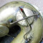 I guessing that the high Eb key perhaps has two stages of opening, which could explain its shape? In stage 1 it acts like a normal D#/Eb key does. If the horizontal portion is pressed though, it might act like a high F lever. I’m just guessing here. If someone can come up with a better theory, or if someone has an Orsi bass like this, please leave a comment below. Thanks!