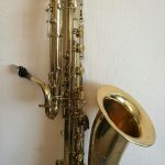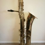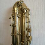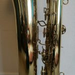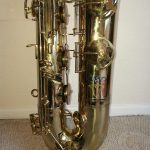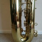 The sax was bought several years ago from John Packer Music in the UK. ….This sax is in fantastic cosmetic and playing condition and comes complete with its crook, mouthpiece + ligature (very expensive on their own!), a set of new reeds and its original wheeled case. The sax plays very nicely, although it’s certainly more challenging to play than any other type. It’s hard to describe the feeling of playing the low B? on this – it’s earth shaking!
