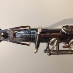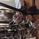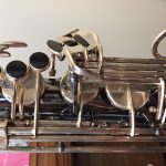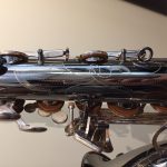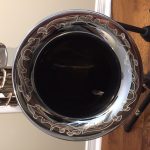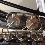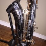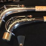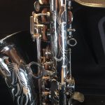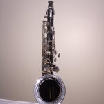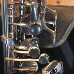 Guardala black nickel plated, with silver keys, alto in beautiful condition. Historic NY landmarks and stars are etched on the key cups. Comes with two necks with matching serial numbers. The best part: it plays great and in tune. My research says it was made by VMI, a German company, which made these for WWBW, but I don’t see a stamp which validates that. Comes with brand new Keilwerth case. Really stunning and rare pro level horn.
