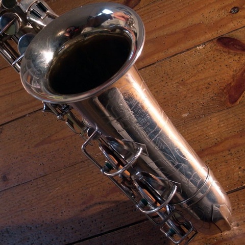 - 1940s, Eb Alto, French, Low Bb to Altissimo F, right side bell keys, rolled tone holes, silver plate, silver plated, SML, SML Super Series, Soldered Tone Holes, wire keyguards