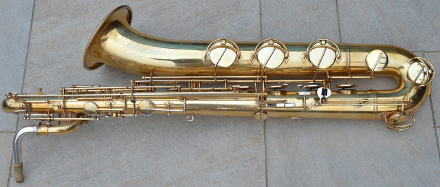 - 1960s, Eb baritone, Eyebrow keyguards, Germanic, gold plate, Low A to altissmo F, right side bell keys, rolled tone holes, Soldered Tone Holes, Werner Roth, Wero Royal;, wire keyguards