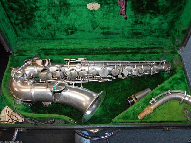 - 1920s, American, Eb Alto, JW York, Low Bb to Altissimo F, silver plate, Soldered Tone Holes, split bell keys, Straight Tone Holes, wire keyguards
