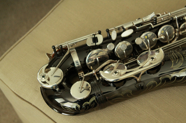 - 1990s, B & S, Bb Tenor, black nickel, Drawn Tone Holes, Germanic, Low Bb to Altissimo F, right side bell keys, Sheet Metal Keyguards, Straight Tone Holes