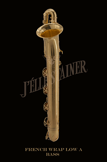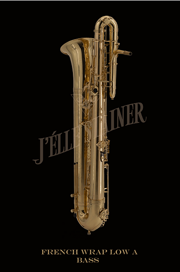 The J’Élle Stainer low A French Wrap bass is one of the company’s current production model bass saxophones, and can be found on their new website.