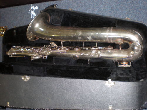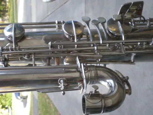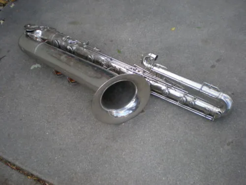 I wish the seller had provided better/more photos of this interesting Orsi bass saxophone. Its features appear to be consistent with the 119 Improved model bass saxophone from the vintage catalogue.