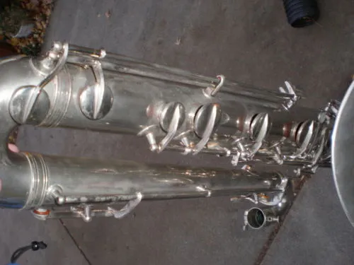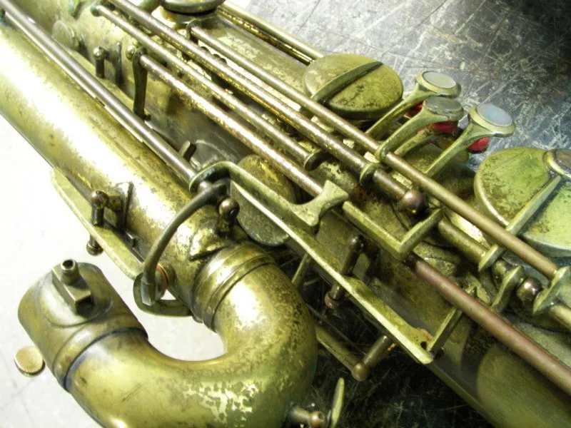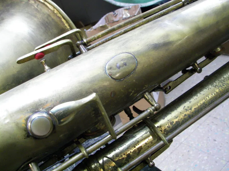 Whatever its story, this old-timer is likely not as old as it appears, and by the looks of it, has had a lot of use. That said, to date it is the oldest Orsi bass sax that I have seen. (All 60+ images of this horn are available on Bassic Sax Pix.)