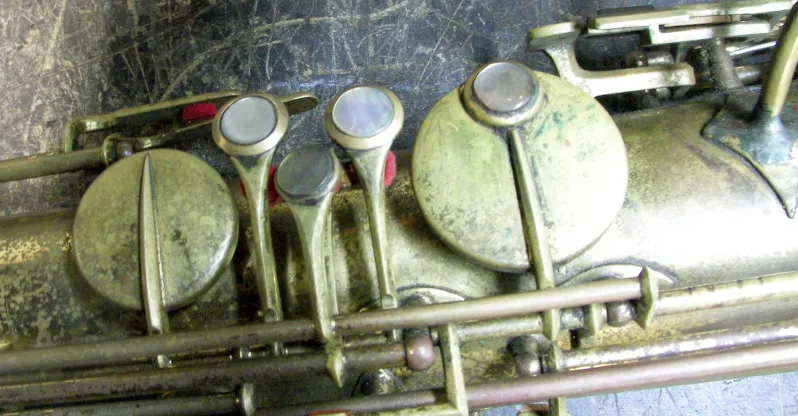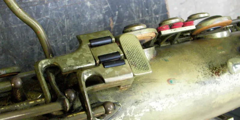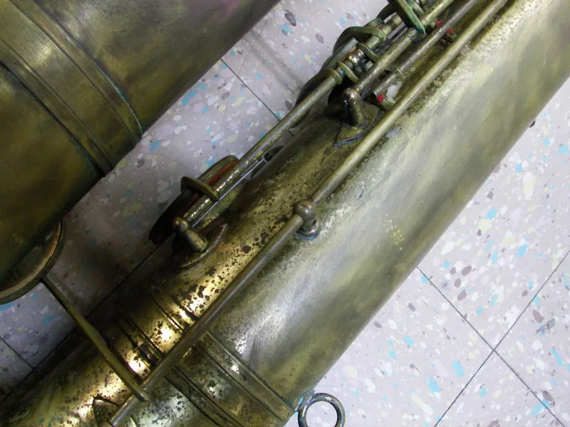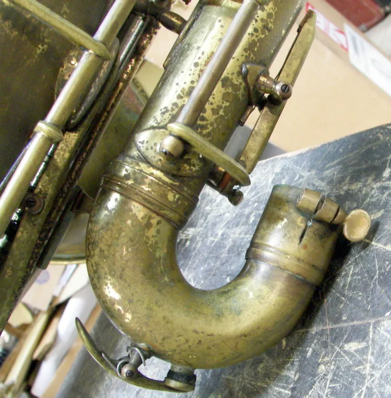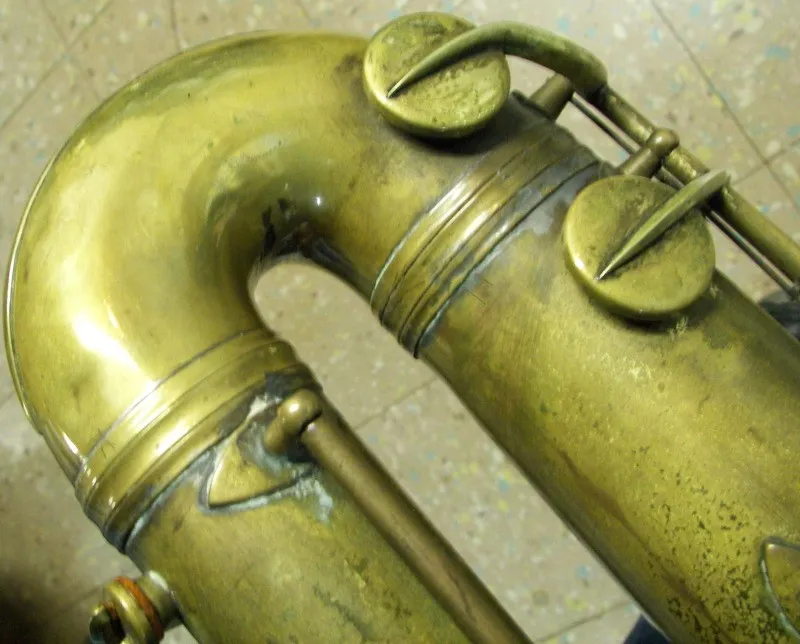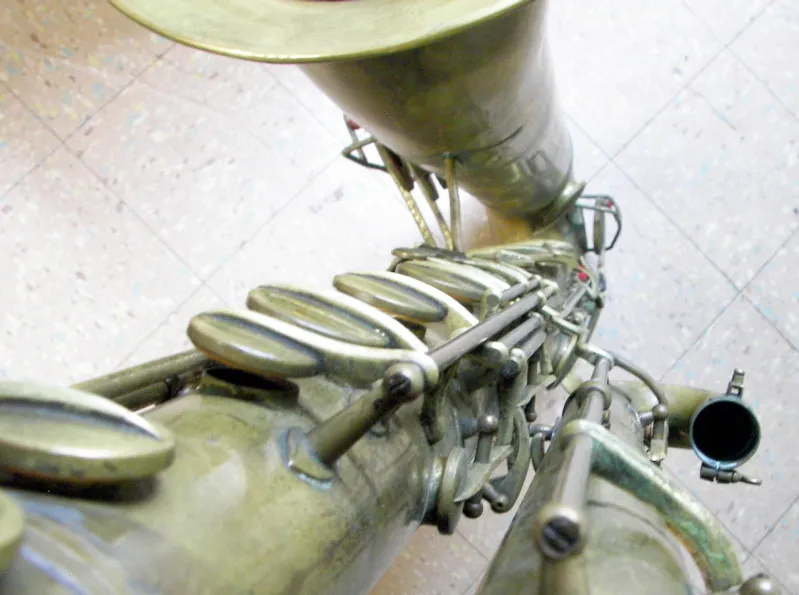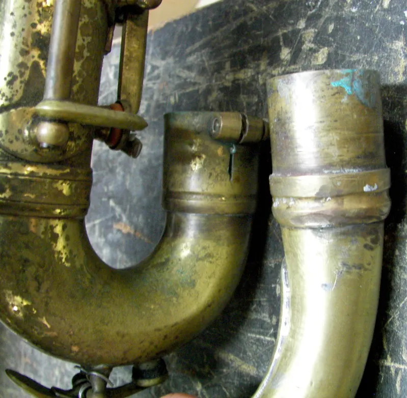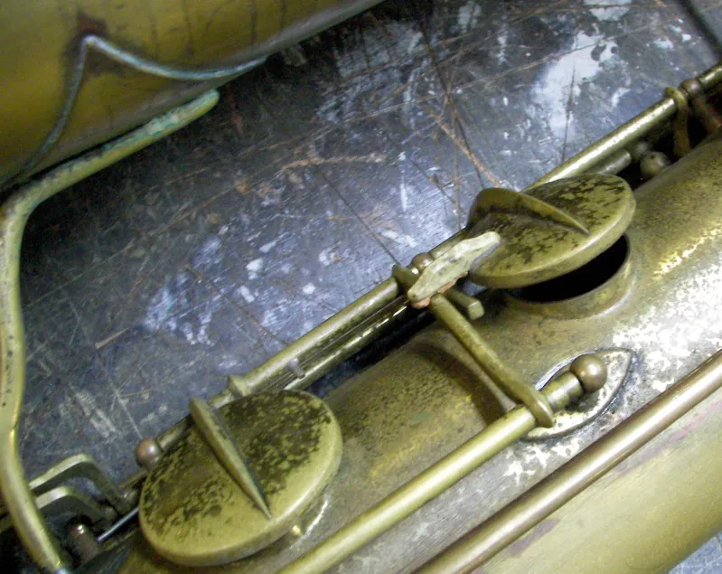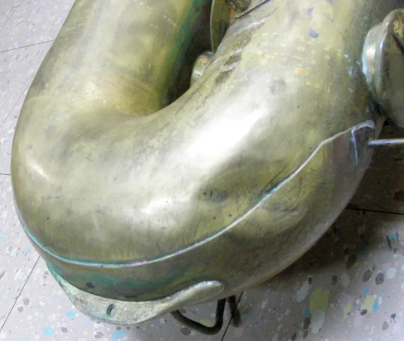 This poor beater of a bass appears to pre-date the undated vintage Orsi catalogue I was sent. However, its features are generally consistent with other older Orsi saxophones that occasionally pop up on eBay and the likes.