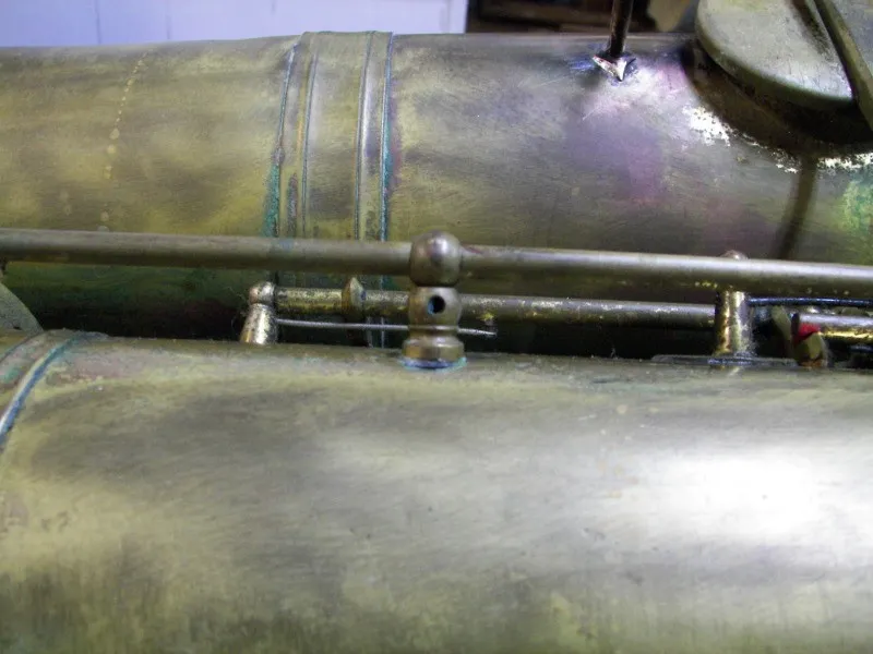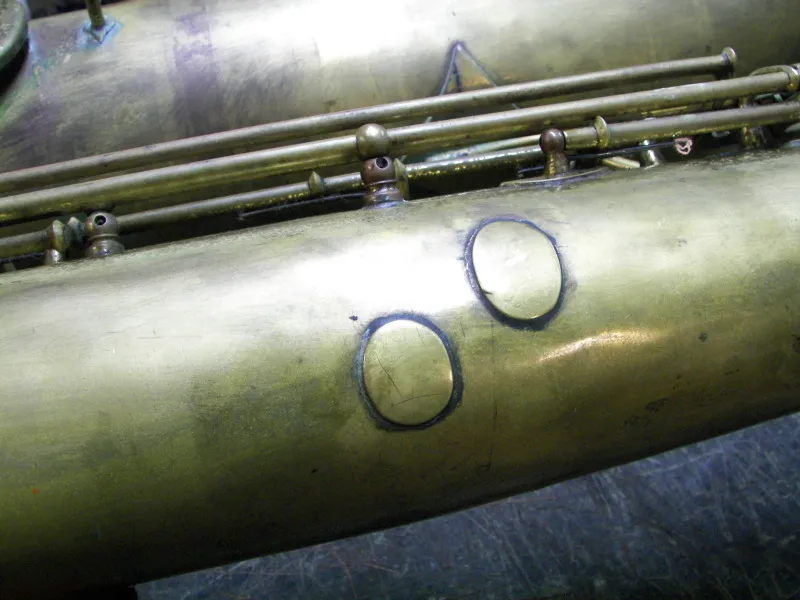 To me this horn has always reminded me of the Conn New Wonder series. (The nail file G# will do that I think.) I have never been able to figure out why there are so many brass plugs that have been soldered into place. It’s almost like this horn had a run-in with a sadist.