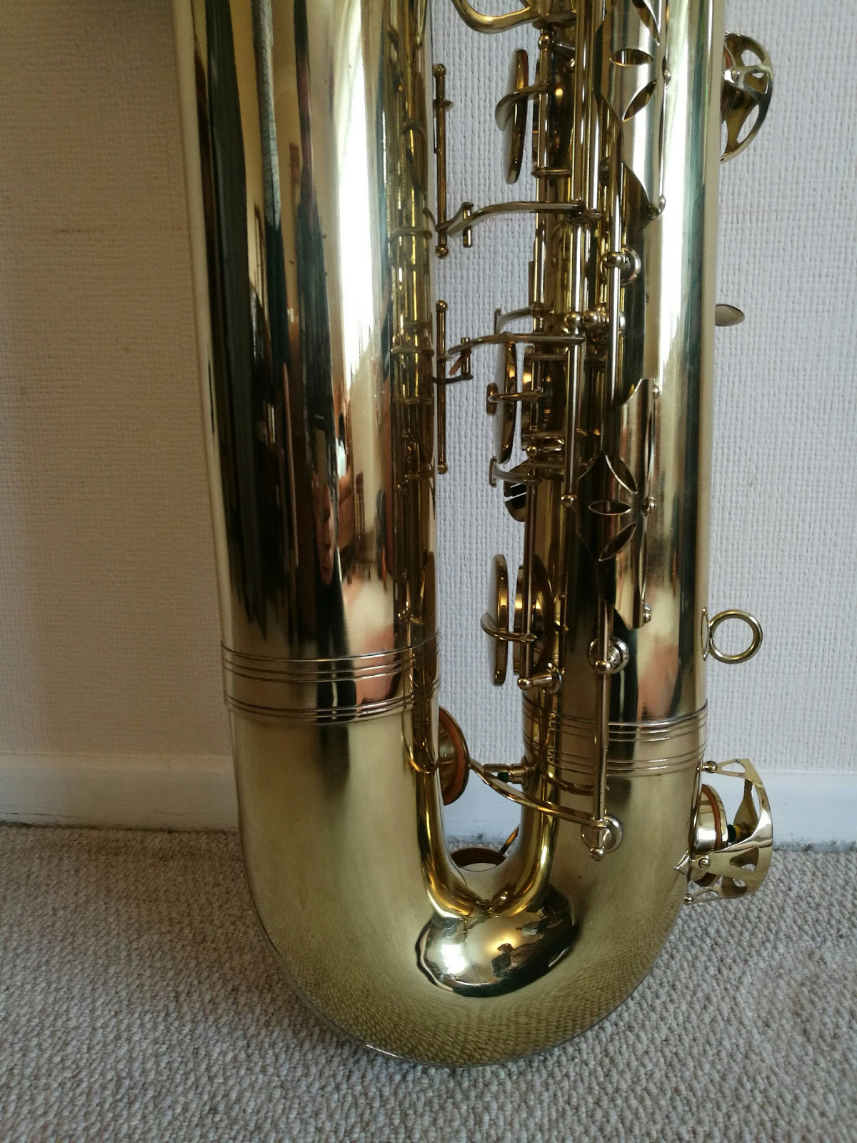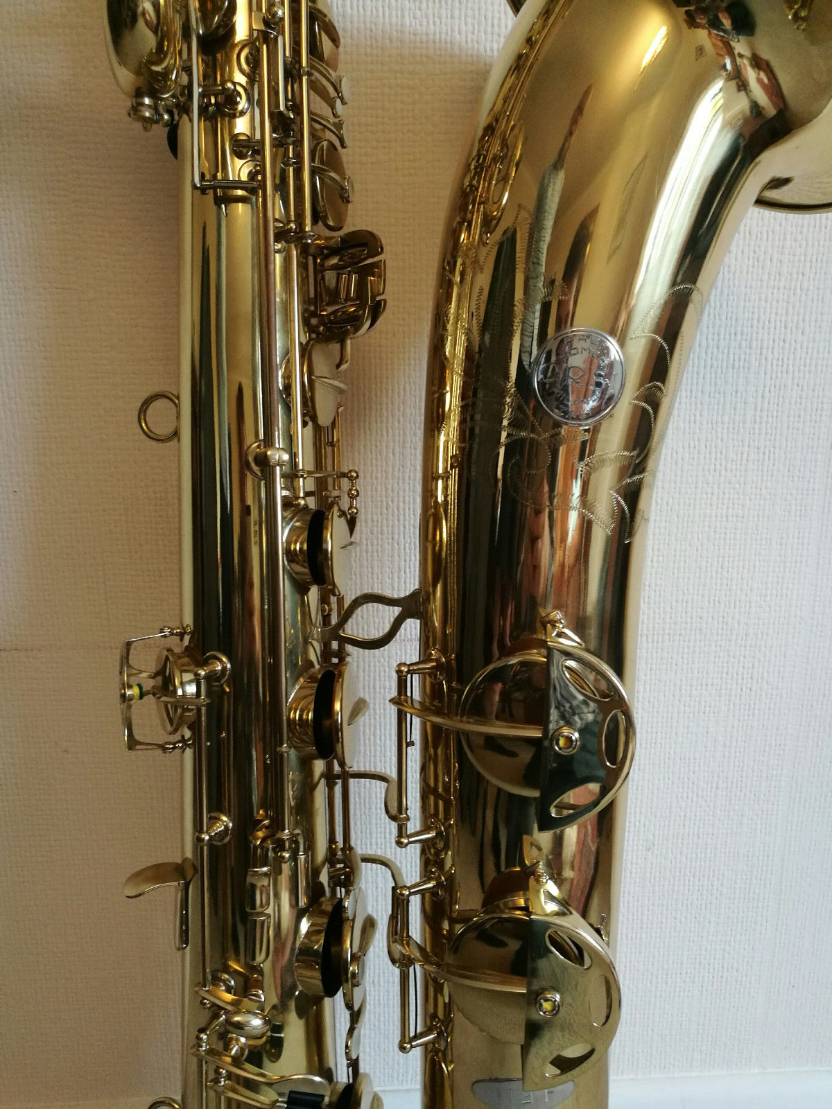 This oddity popped up while I was doing research for this new Orsi bass sax page in July 2023. What model is it? I don’t know. How old is it? I don’t know that either. Is it a pro model? I am guessing that it is, but with only three photos, it is impossible to say for sure.