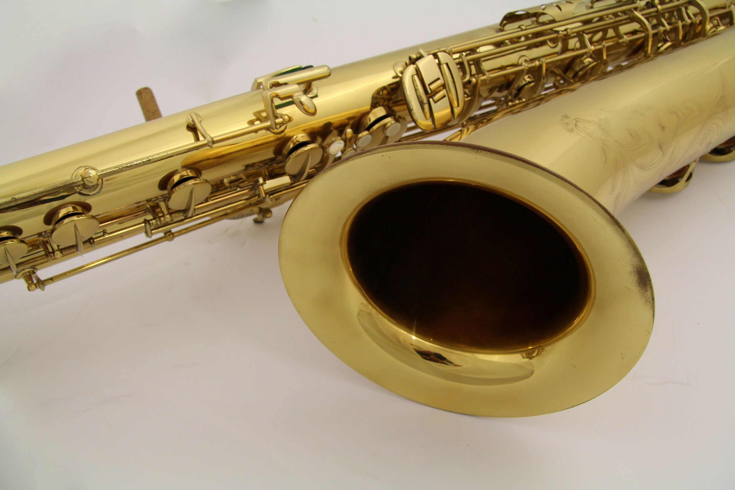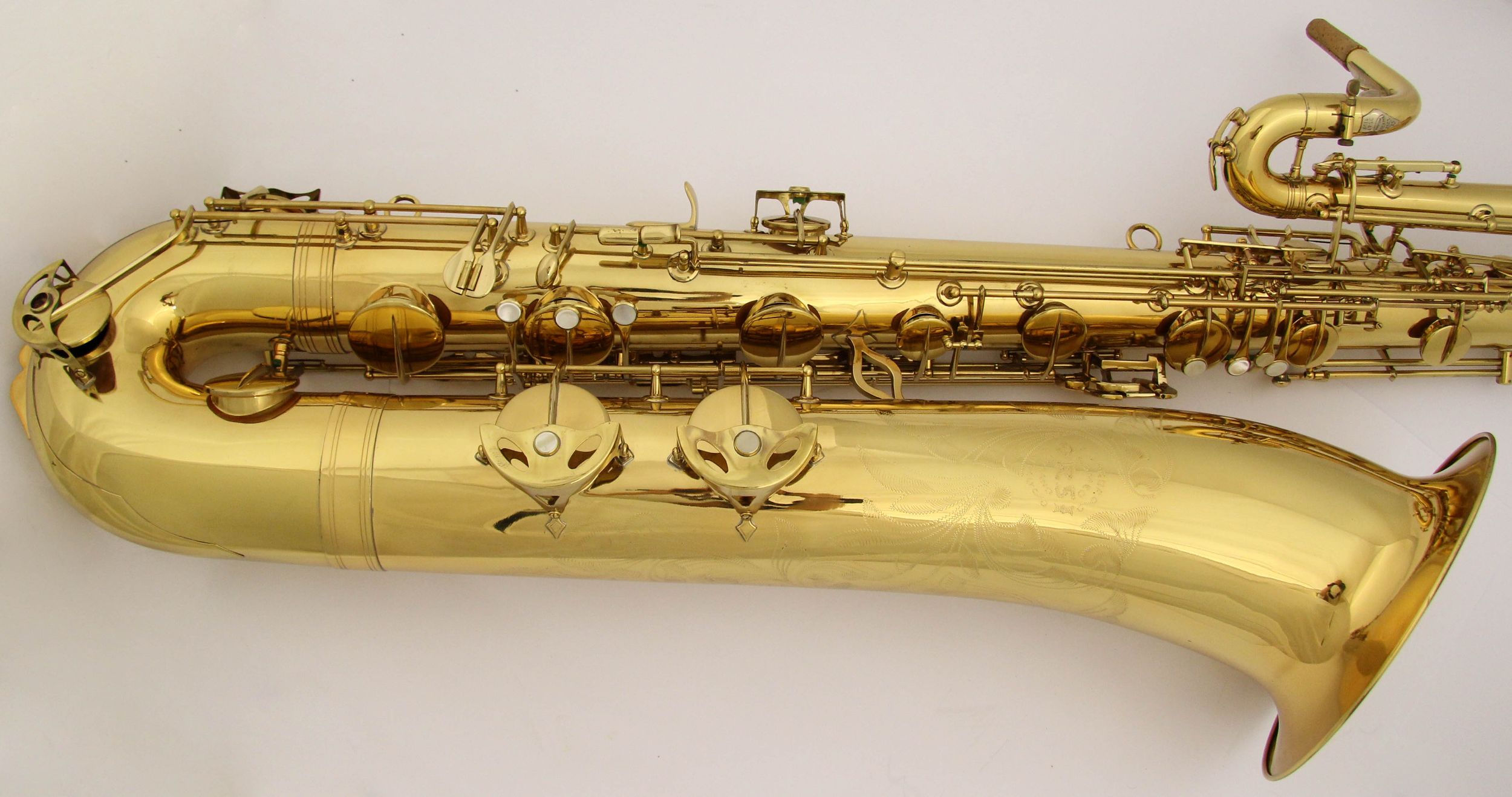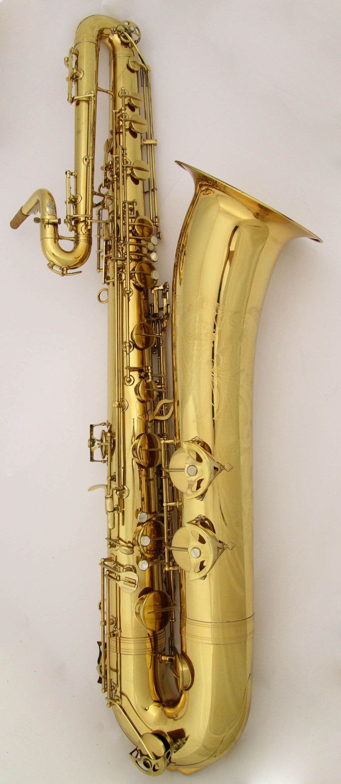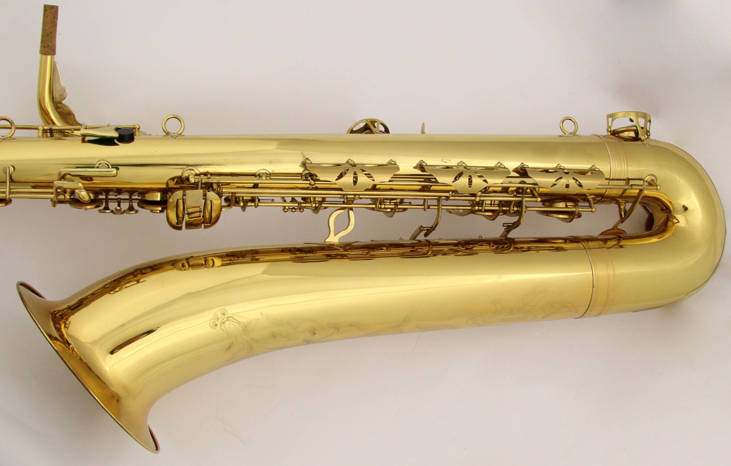 Here are a couple of other bass saxophones to compare it to: 1. A Jinyin stencil keyed to high F. 2. A Conn 14M keyed to high F. 3. Orsi 4269 that is also keyed to high F.