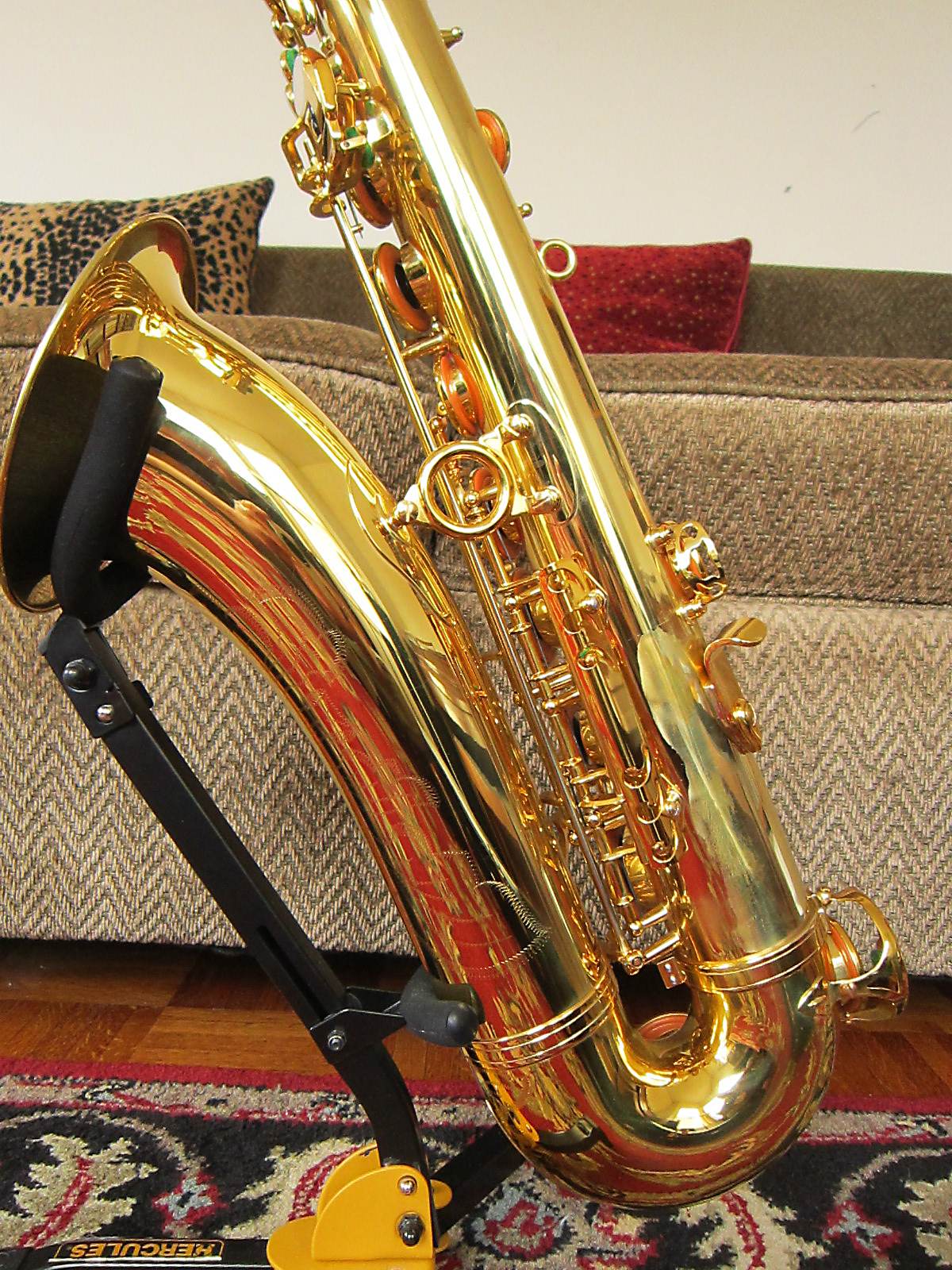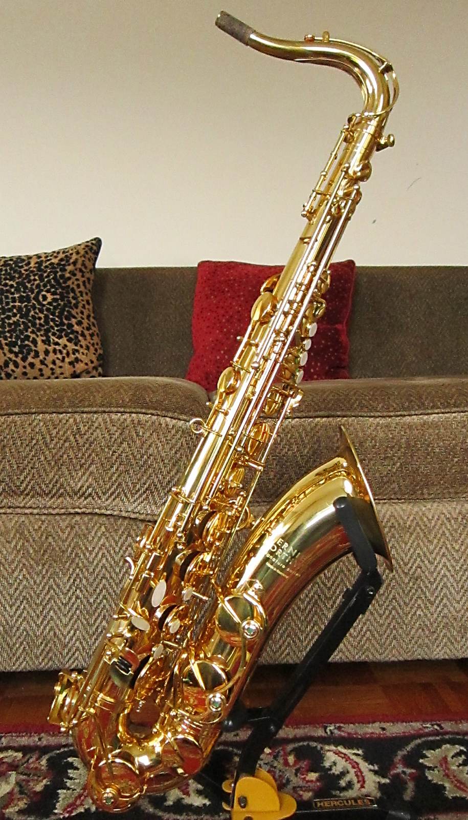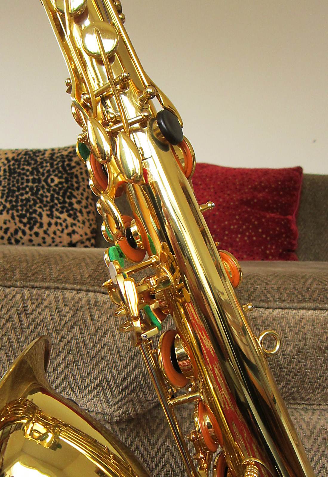 The easiest way to differentiate between a pro model B&S saxophone and an intermediate model is by the bell to body support ring.