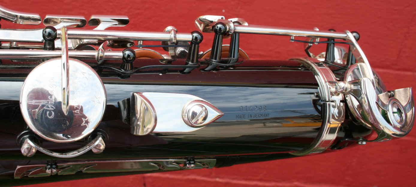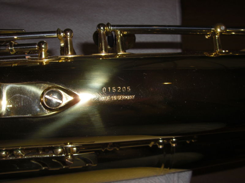Given that stencil saxophones are notoriously inconsistent in where they come from, one way you can be sure that you’re getting a real German-made B&S saxophone vs. an Asian-made horn of the same label, is by the serial number convention. All B&S saxophones will have the following serial number convention, and a Made In Germany stamp directly under it.
