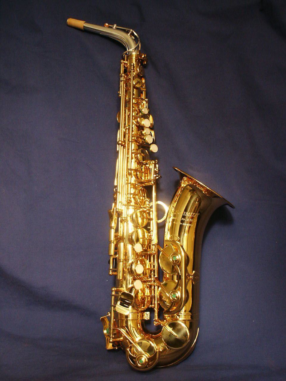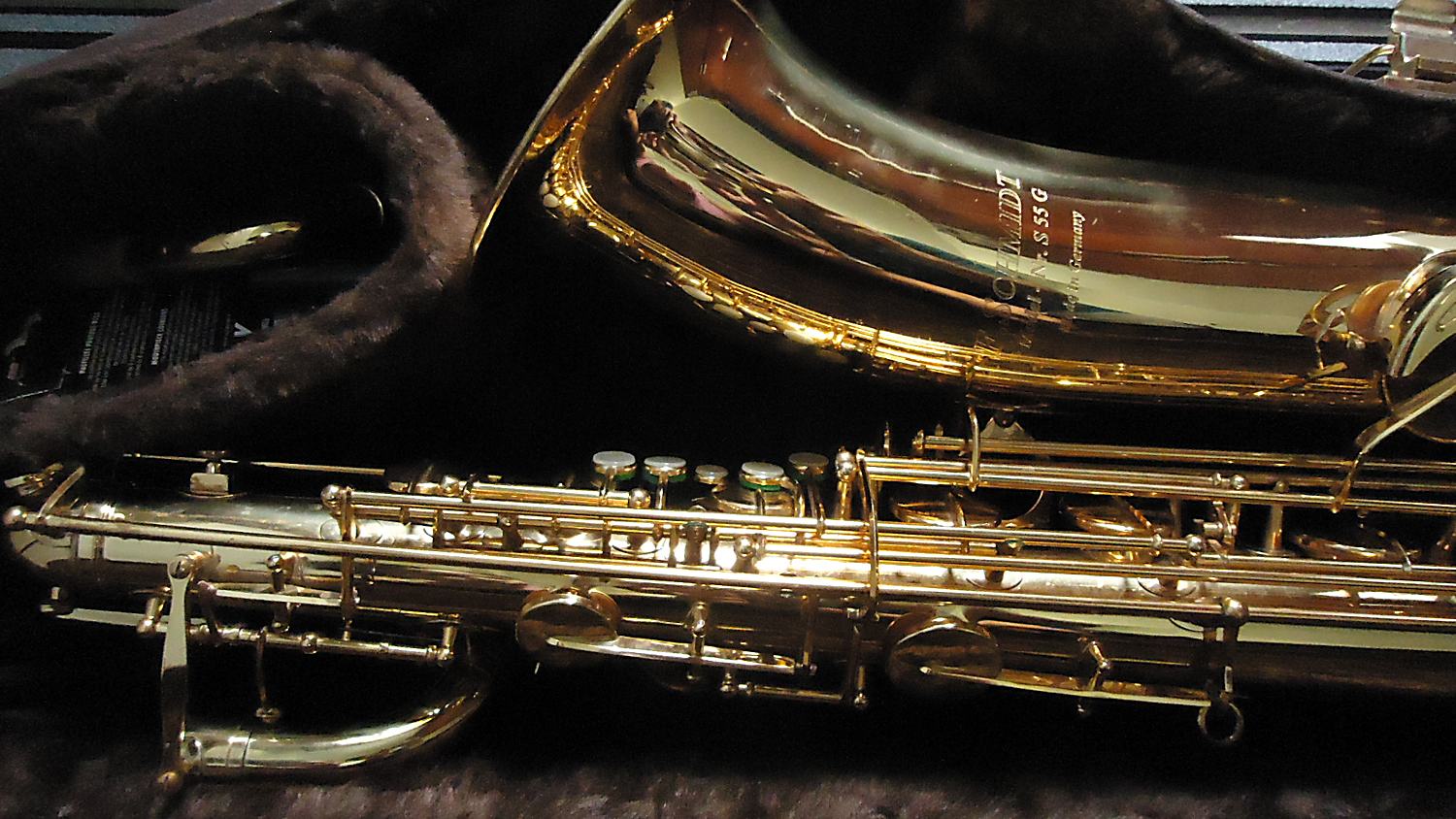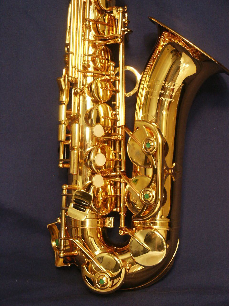 According to the Justia Trademarks website, the F. Schmidt Musical Instruments trademark is owned by Universal Melody Services. From what I can see, lots of different band instruments bear the F. Schmidt name. For the purposes of this page however, we are only concerned about the saxophones that bear the F. Schmidt name.
