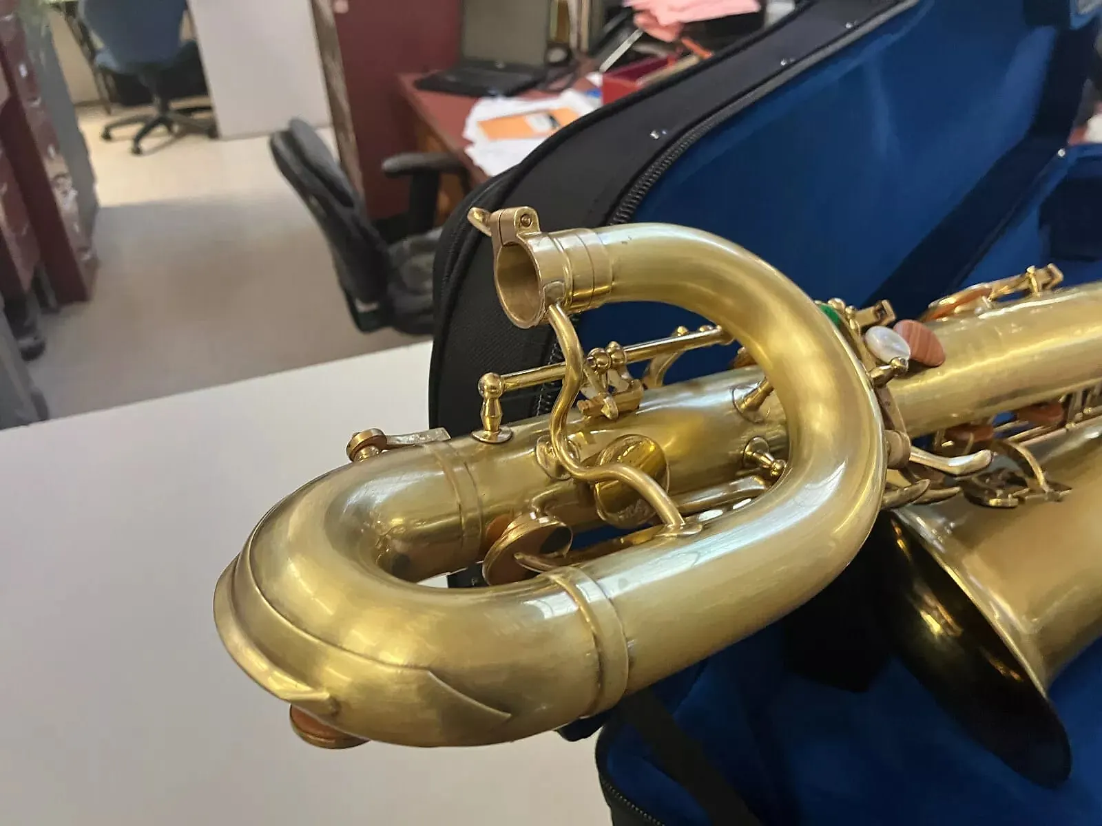 Superba I keyed to low Bb # 69250 – Body lacquer stripped; hand polished; satin finish; lacquer keys; new Nikolas 2105 lacquer applied