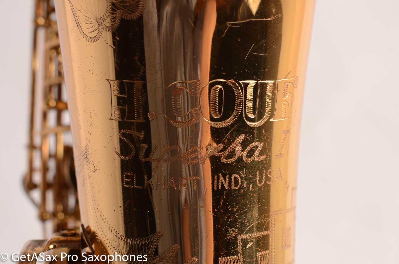 Other than the serial number indicating one of the first years of H. Couf production, these early altos have the Lucite pant guard seen on JK saxophones.