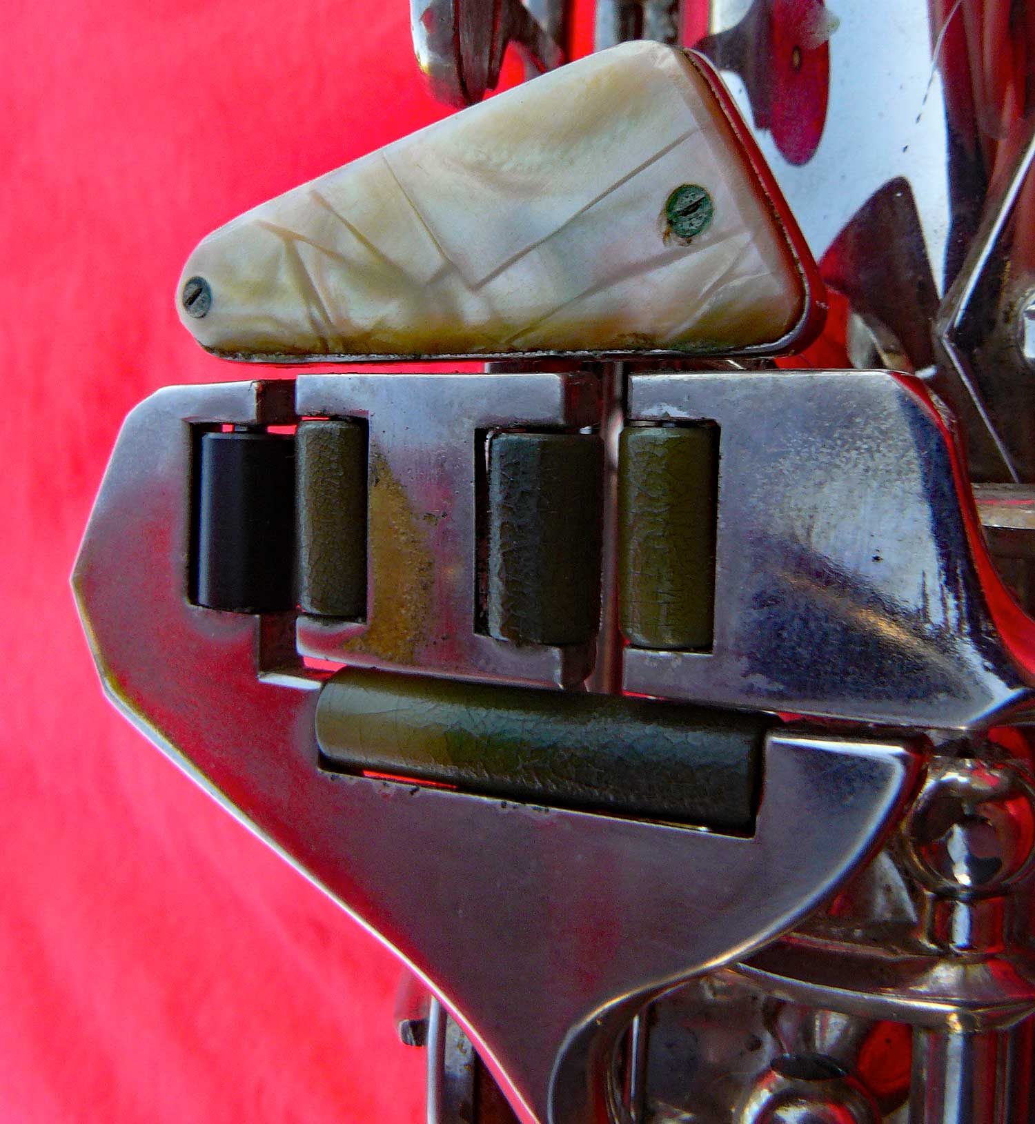 Over the course of their saxophone production, Hammerschmidt’s left pinkie clusters evolved. In total I have documented 5 different pinkie cluster that span the Klingsor/n models and their various stencils.