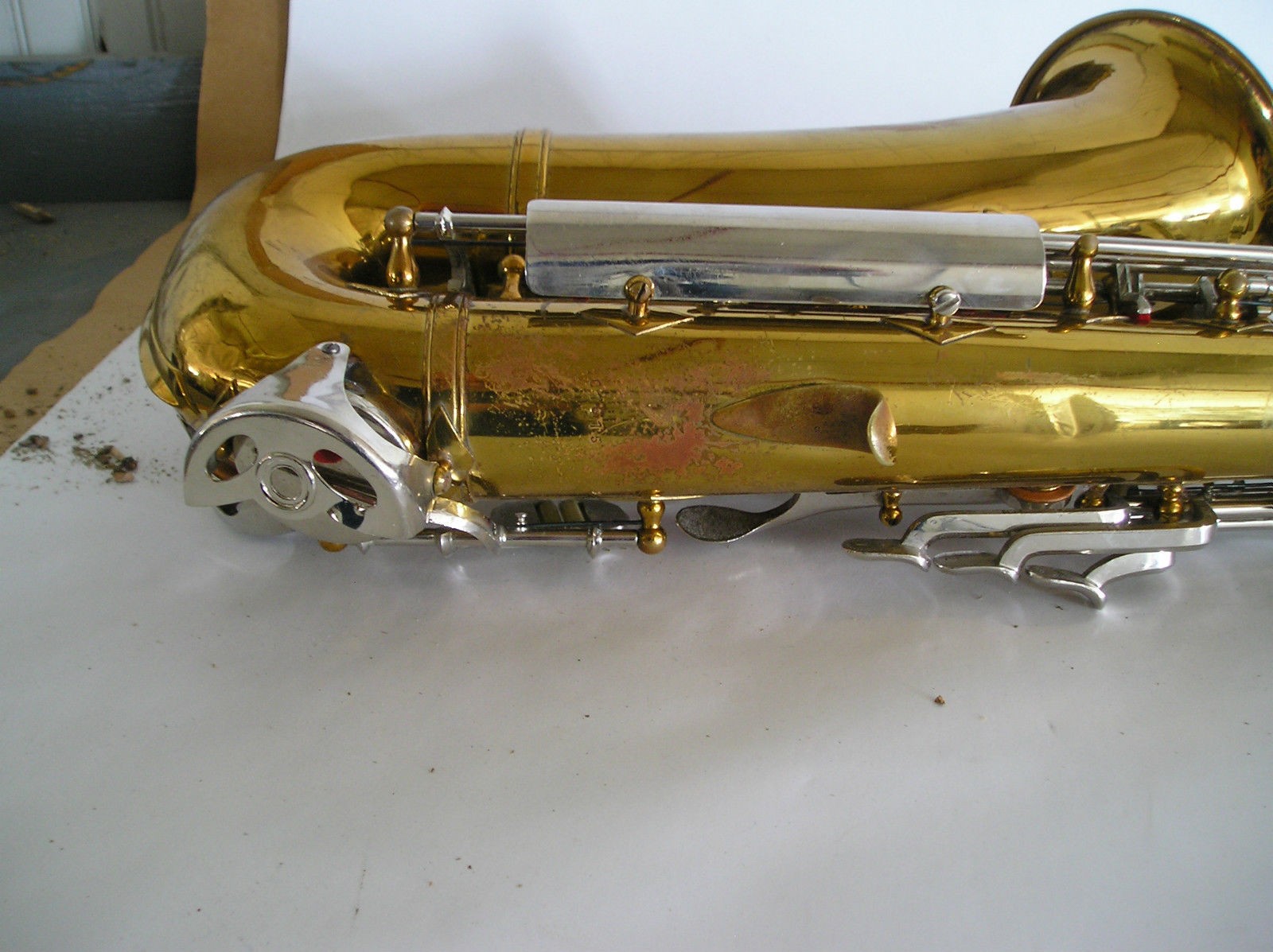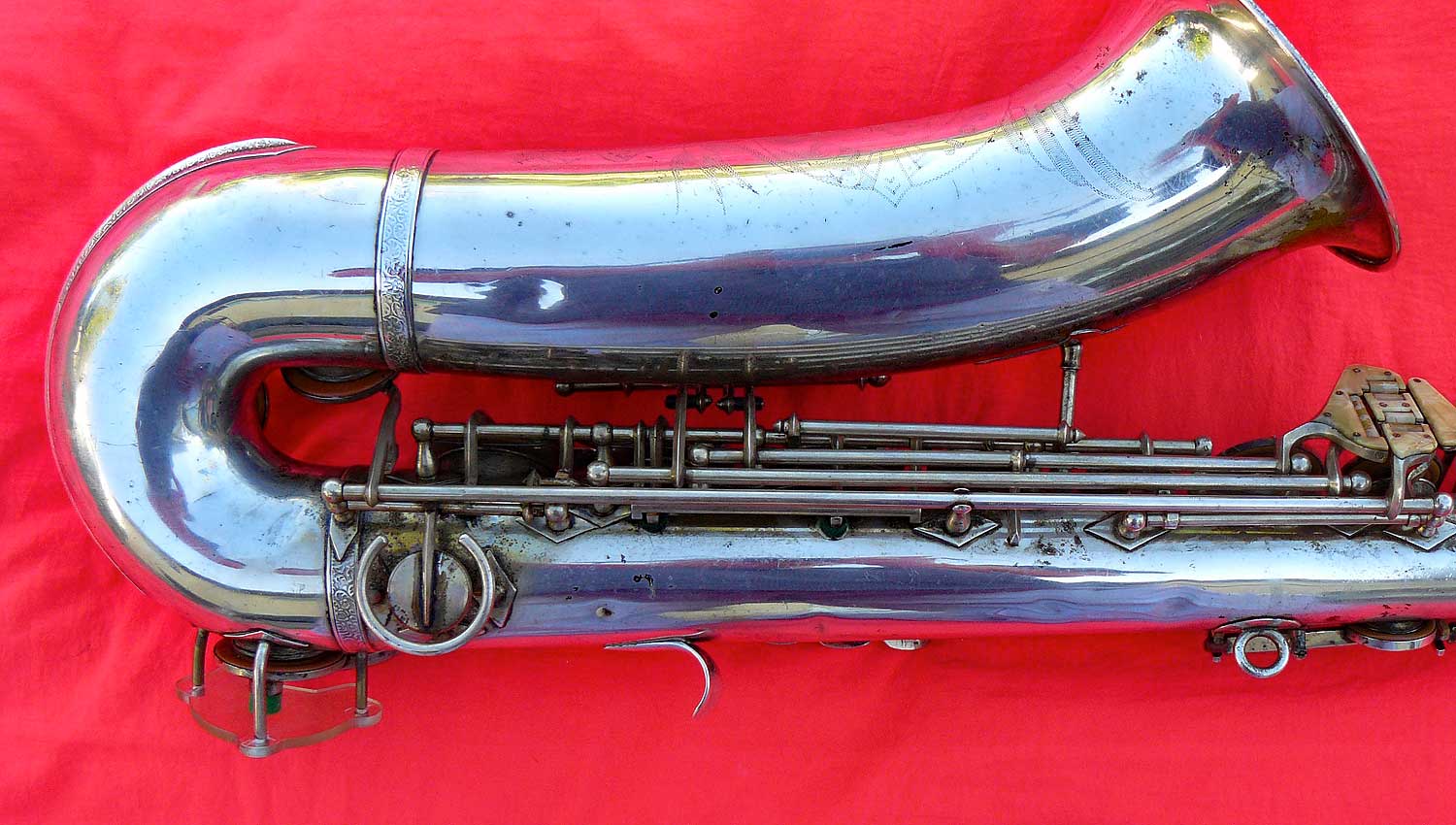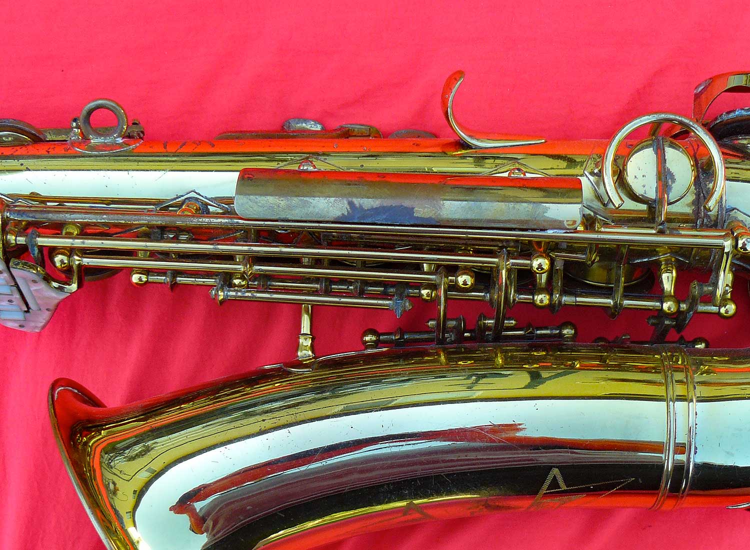 Here is another fairly early Klingsor tenor that has a finish that might have been a custom order. Although the photos are of poor quality, the keys show an incredibly clean finish. There is no evidence that the keywork has been replated/relacquered.