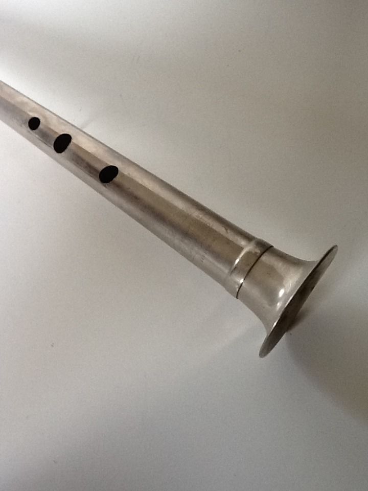 • Six tone holes, in a series, on the front of body tube, which provide a scale like those of a fife or ancient flute.