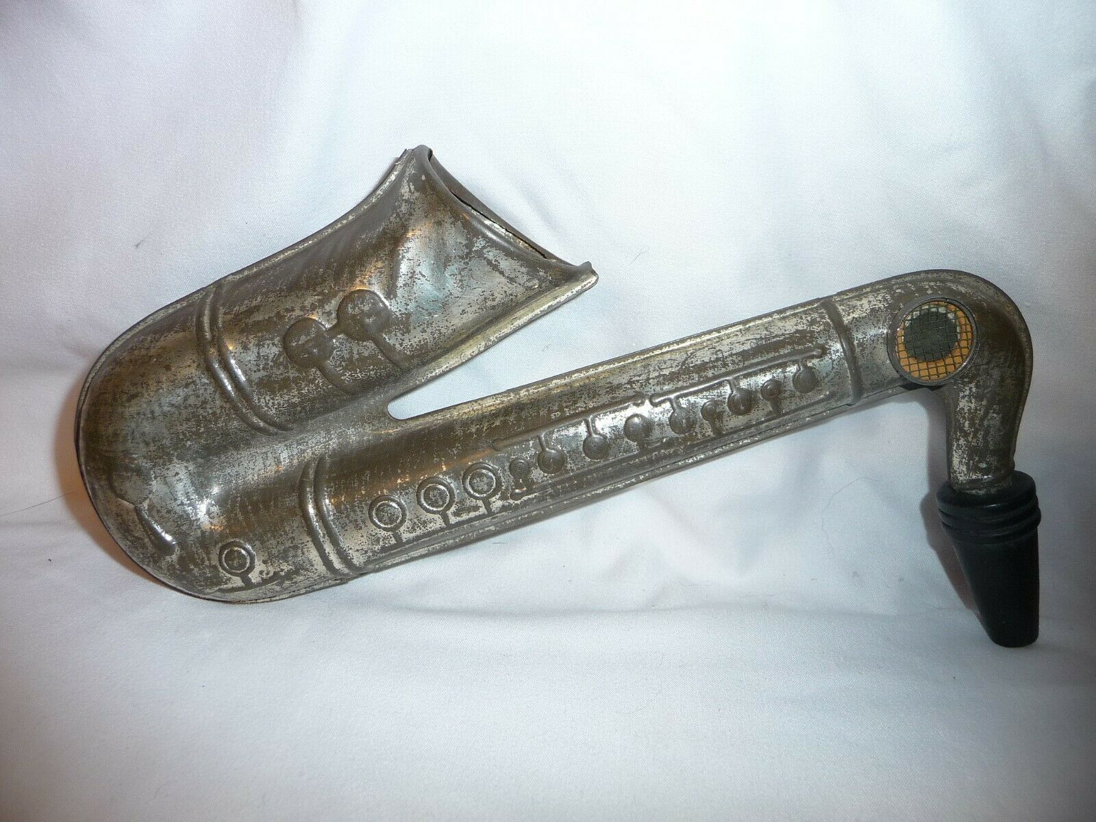 A seller on eBay was selling this sax-shaped tin toy in the summer of 2014. There’s no word on how old this tin toy is, so I’m hesitant to call it vintage.