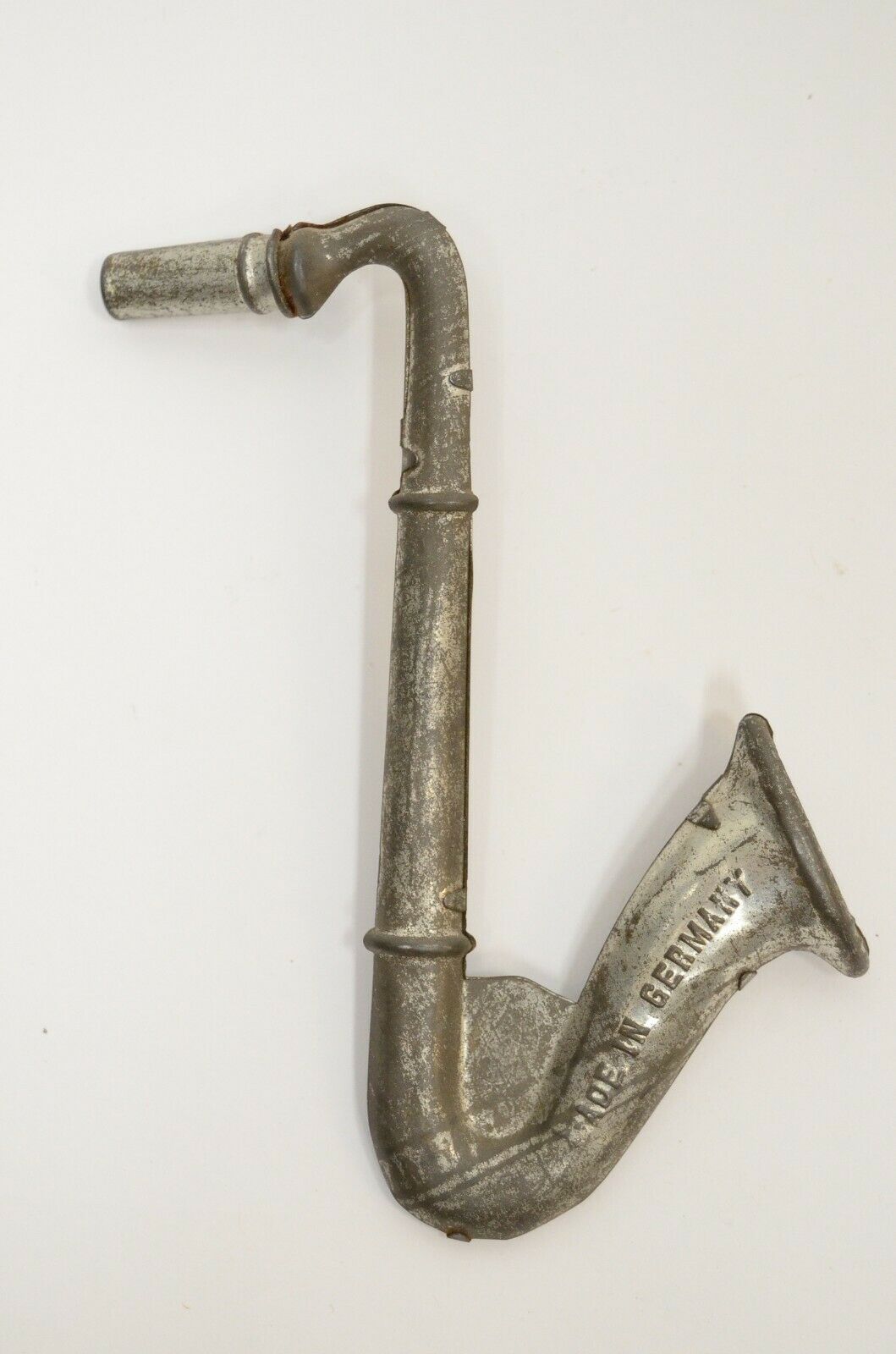 THIS HORN REALLY WORKS, IT IS 4 1/2″ LONG. THERE IS ONE SMALL SHALLOW DENT. MARKED MADE IN GERMANY.