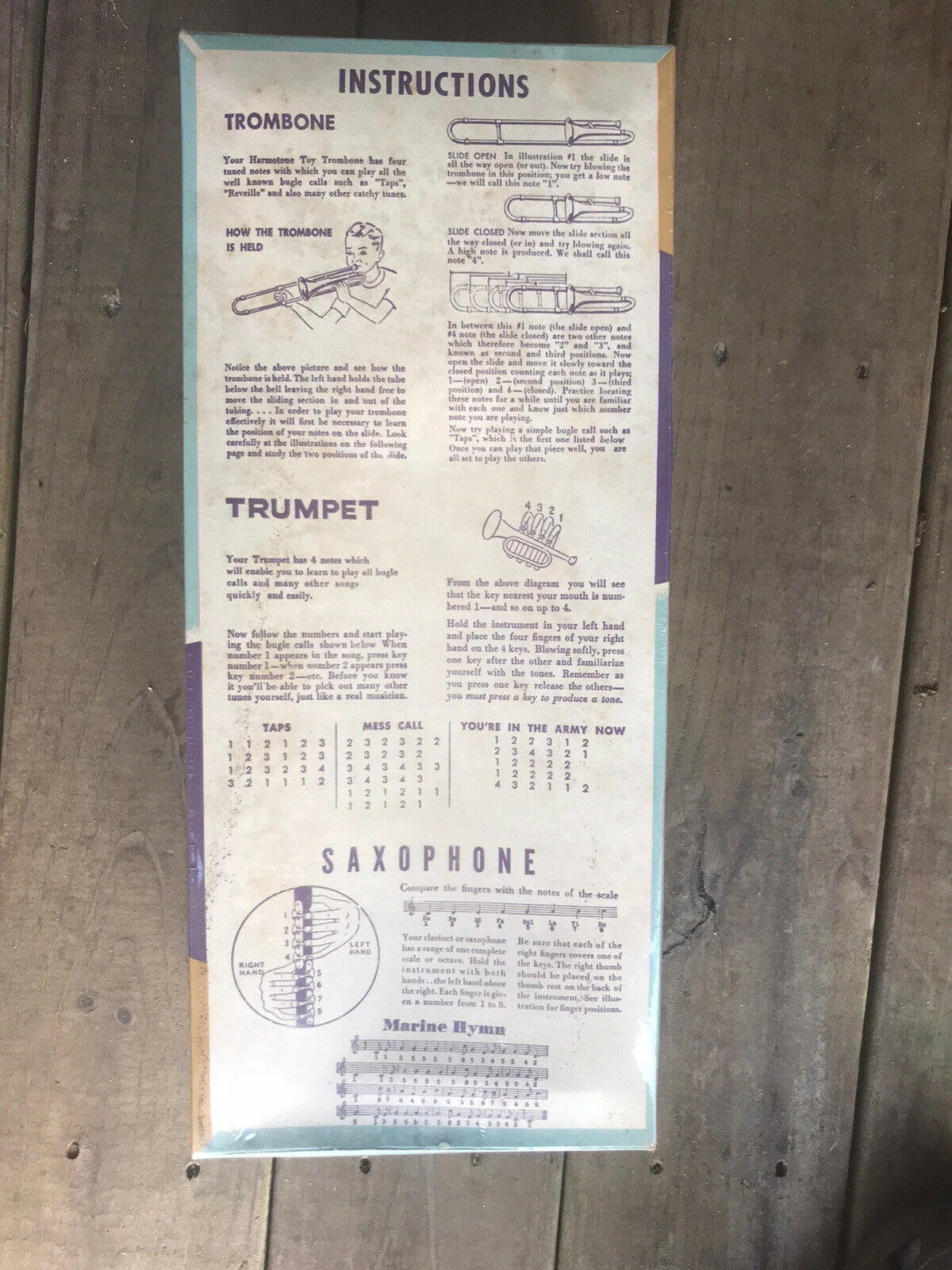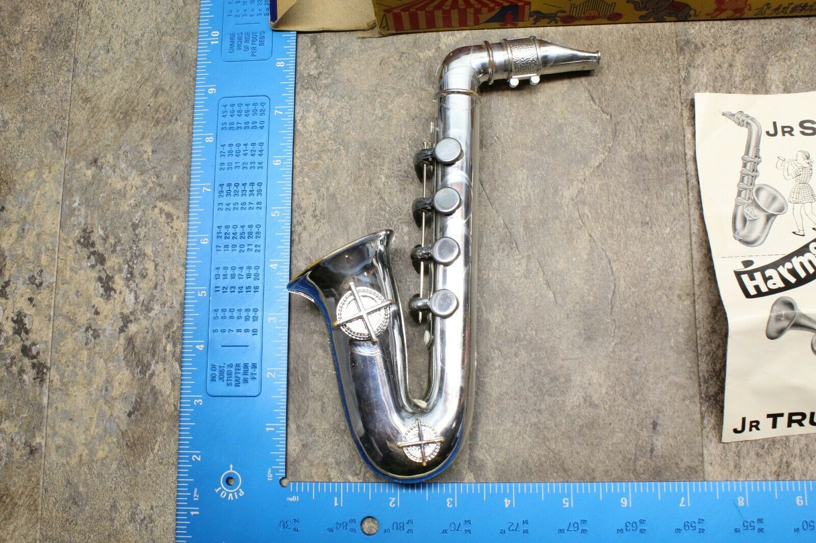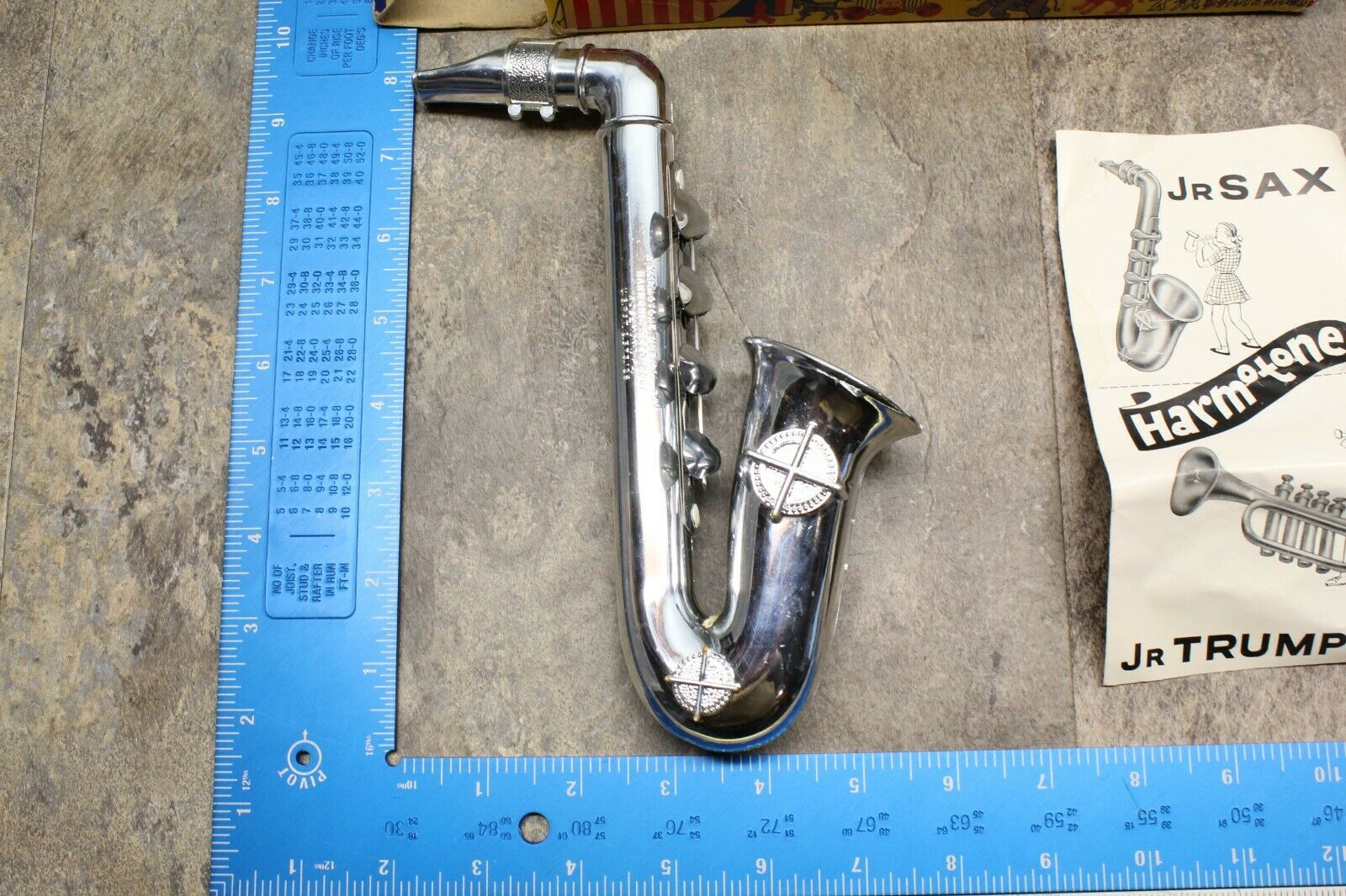 In March 2012 another one of these Harmotone toy saxes appeared on eBay, which also came with its original box. This one however, came with its original instruction manual.