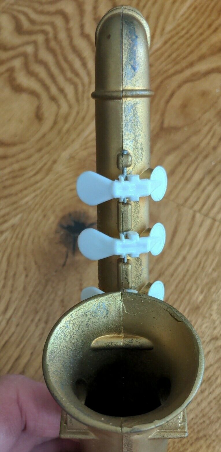 With their silver and gold finishes, it strikes me that Harmotone took their inspiration from real saxophone makers. Just like real saxophone manufacturers, they offered their toys with a variety of finish options.