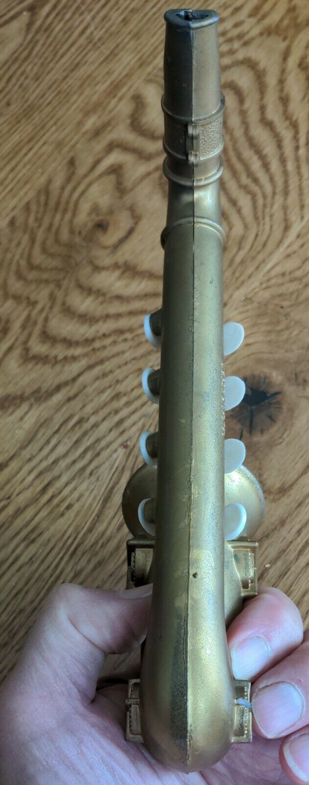 Harmotone also apparently made a gold coloured version of their Jr. Sax. The seller of this little toy noted the following specs about it on eBay: