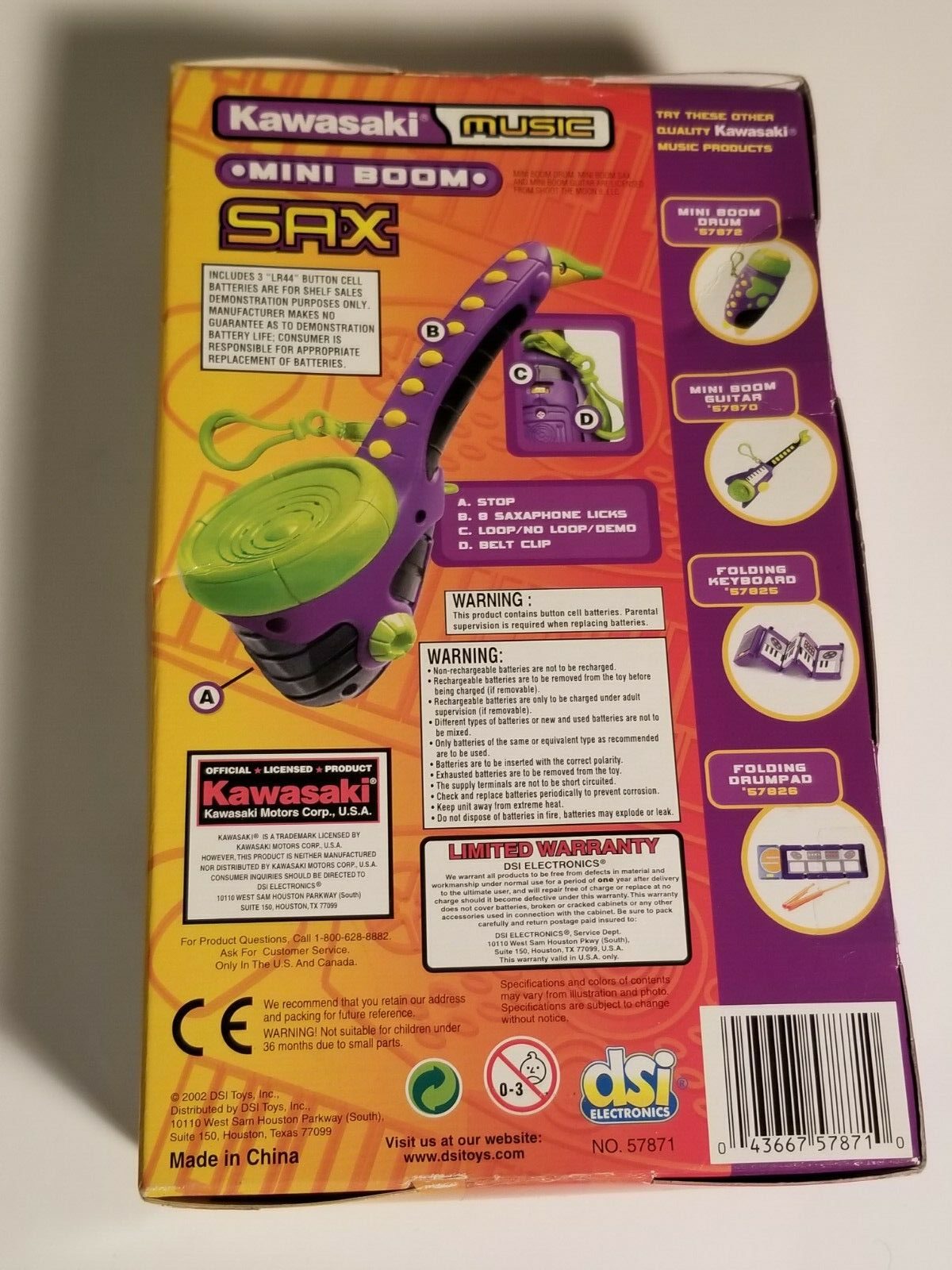 I haven’t had a lot of luck looking up whatever happened to DSI toys. I also haven’t figured out how the name Kawasaki got used in the marketing of this electronic musical toys. I guess these mysterious just add to the mystique of the Sax-A-Boom and the Mini Boom Sax.