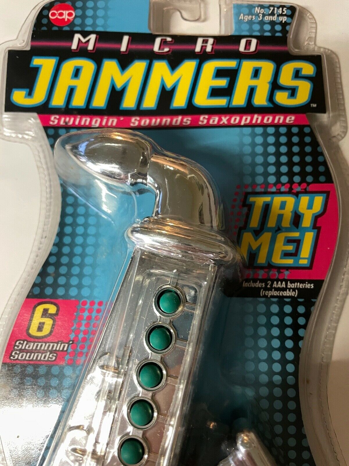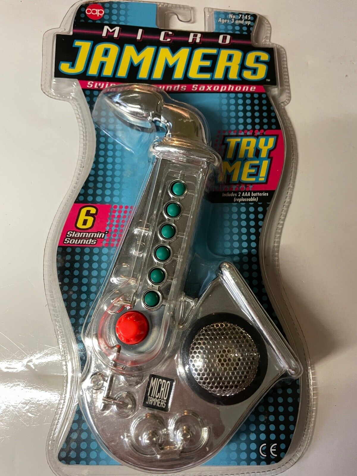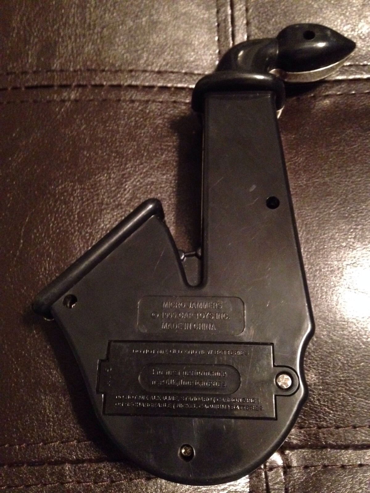 Other than stating the painfully obvious—what it says on the back of the toy itself—I really can’t offer up much. This Micro Jammer sax was made by the Cap Company Inc., and has a copyright of 1995. Through my research I did discover that this sax was one of a series of musical instruments that the Cap Company produced under the Micro Jammer name. Other instruments included: a trumpet, various styles of electric guitars, a banjo and drums.