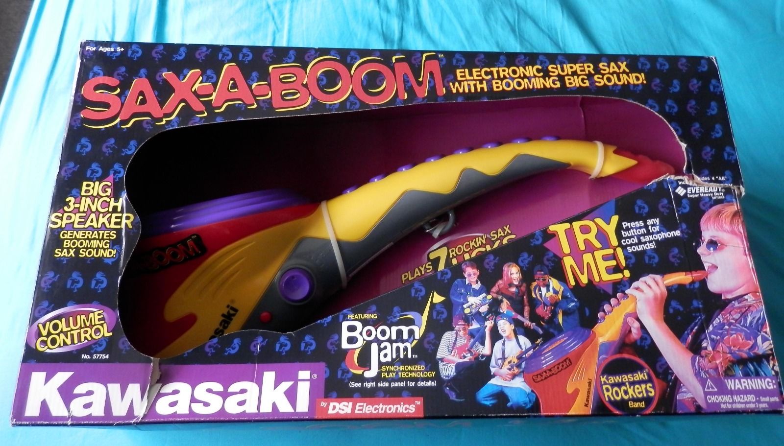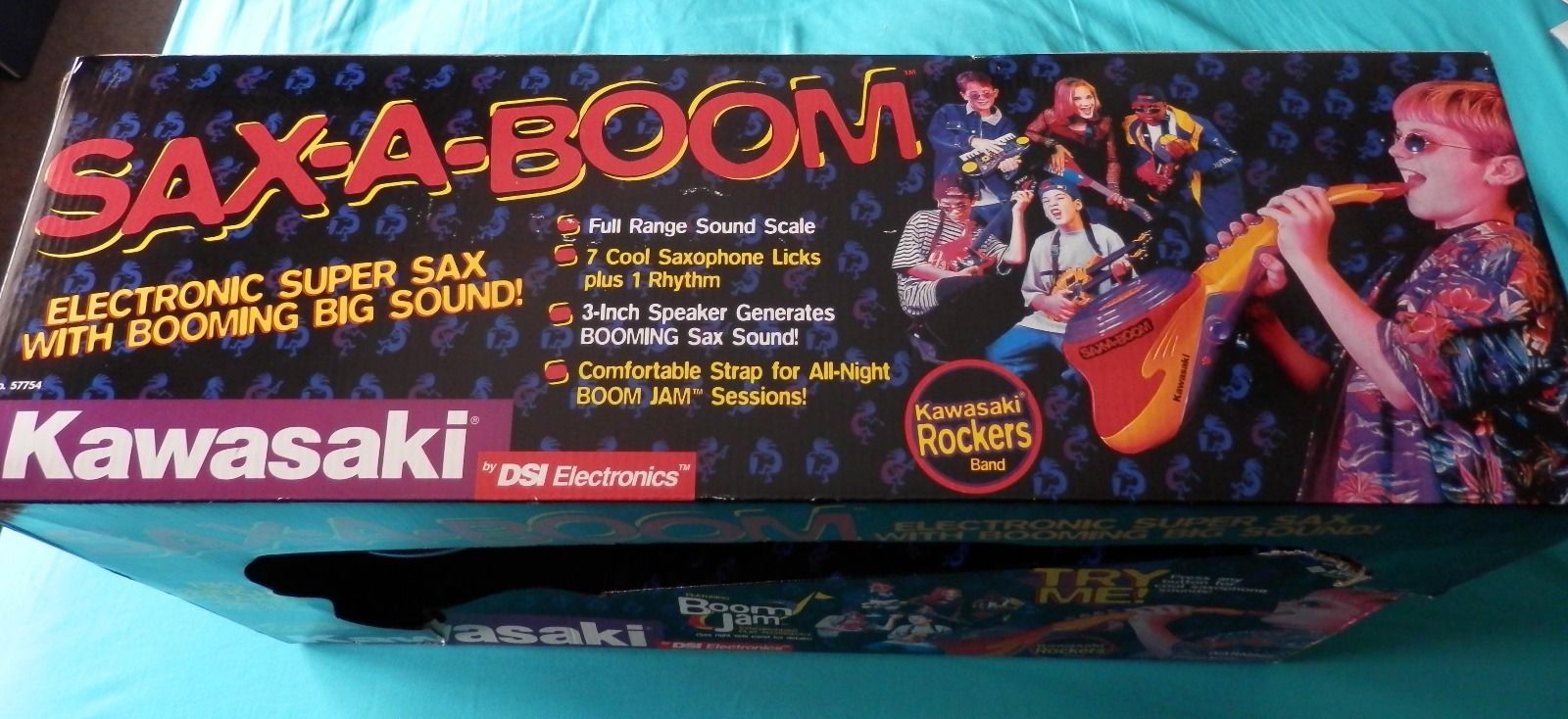 The Sax-A-Boom sold for around $20 new, around the late 1990s. I know, because I bought one. Unfortunately because of a slight bit of miscommunication, mine was given away to a friend’s daughter, while I was on a business trip. The little girl liked it so much, I didn’t have the heart to ask for it back when I got home.