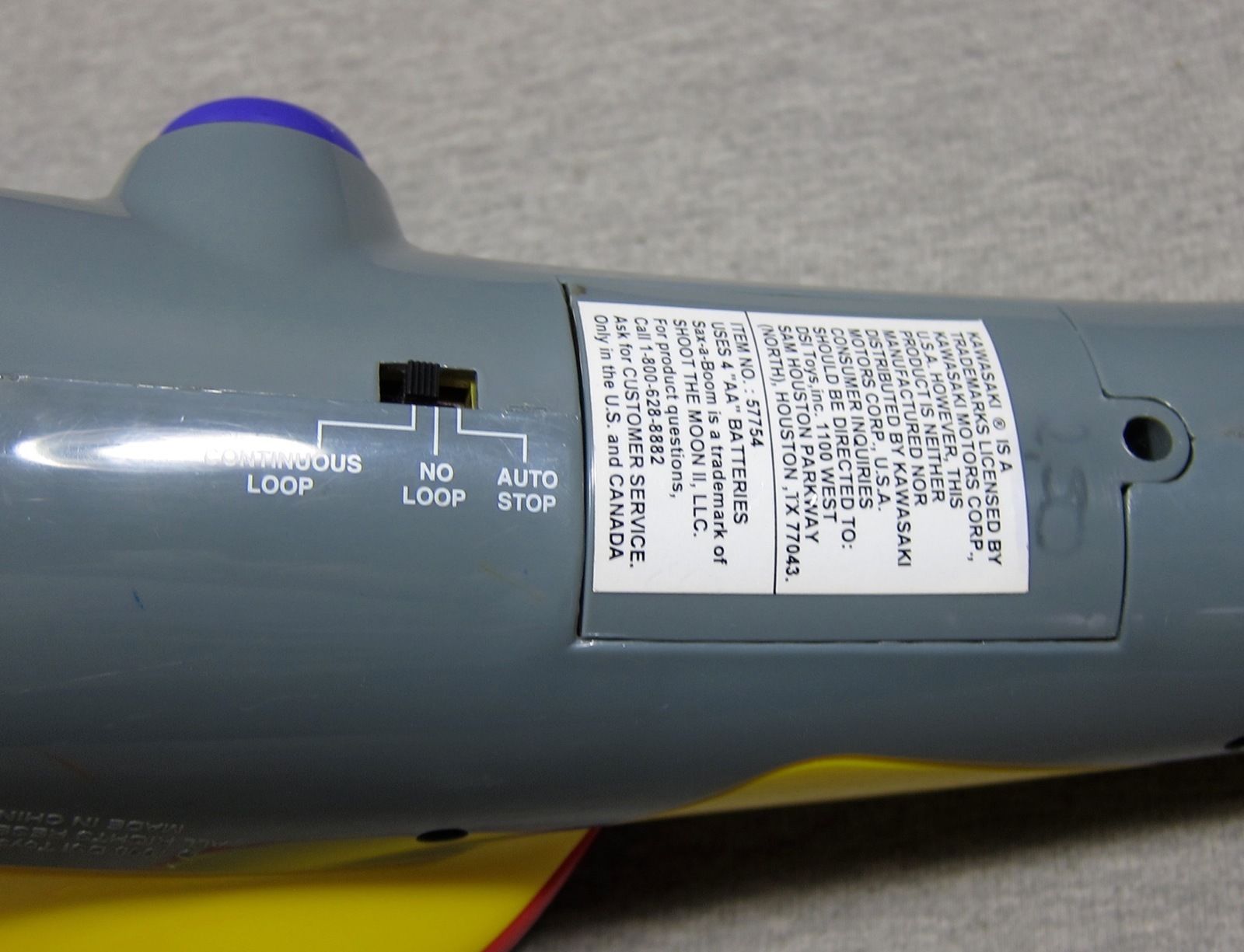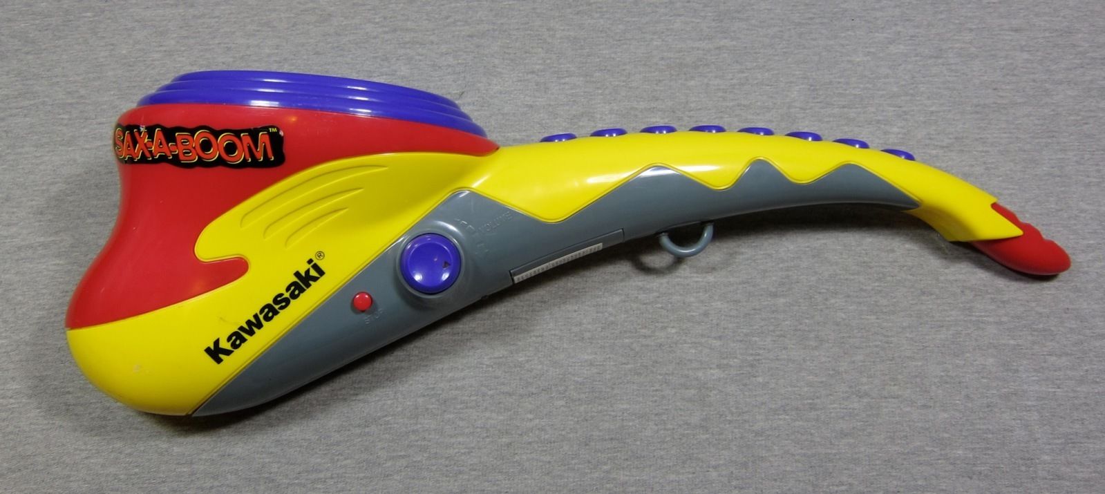 Because of Jack Black’s use of this electronic toy, some owners of a Sax-A-Boom try to sell their horns for ridiculous amounts of money. Get over yourselves people. They were cheap toys. This one was one of the more reasonably priced ones that sold on eBay in June 2014 for $39.99 (still basically double the original price), and it was missing its neck strap.