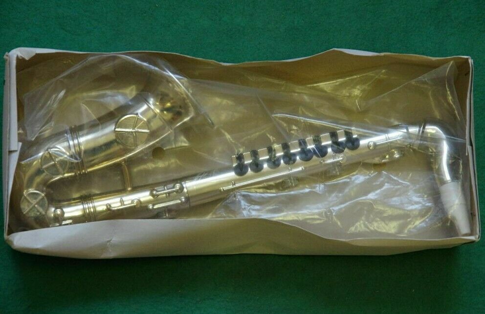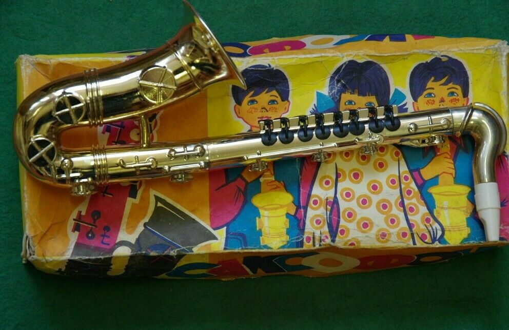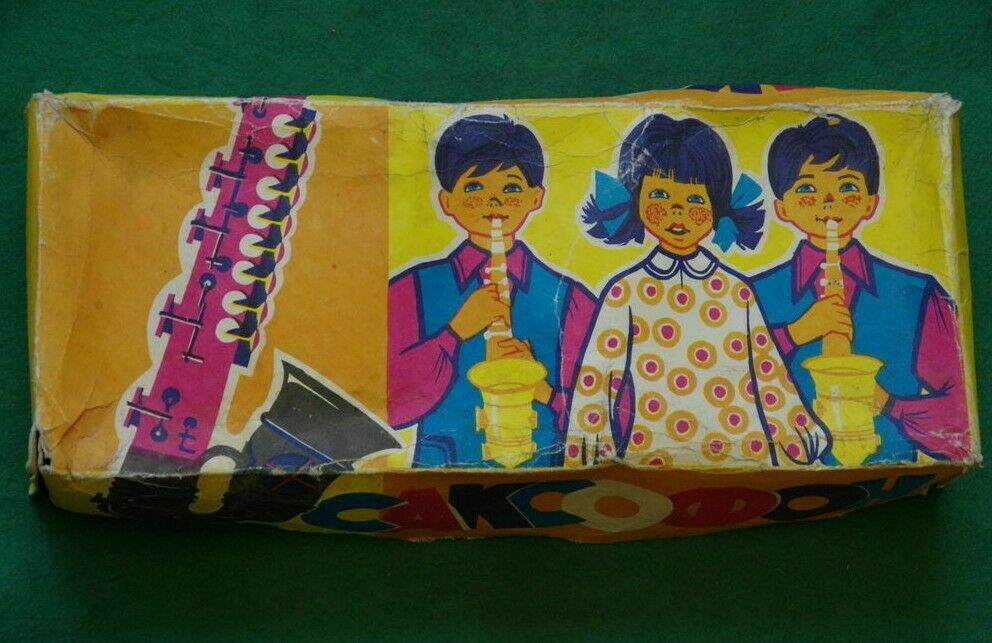 This little USSR-made oddity found its way onto eBay in early 2022. This Soviet era toy sax is pre-1991, since it was on December 25, 1991, that the Soviet flag flew over the Kremlin for the last time. Therefore, given that the original packaging is stamped “Made in USSR”, it is a safe bet that this little sax-shaped “thing” came from one of the 15 former Soviet republics.