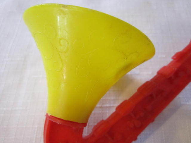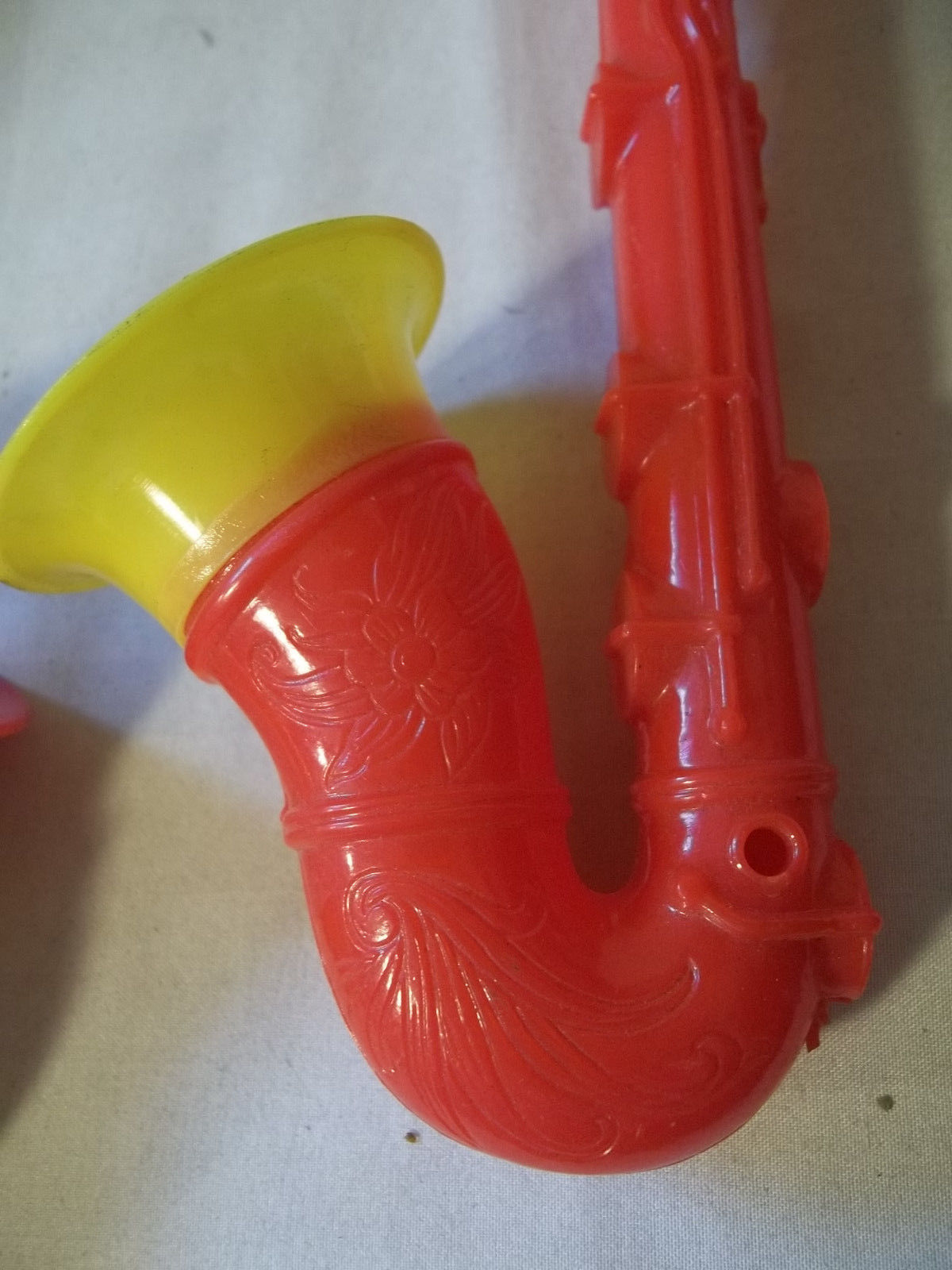 This is how the seller described this interesting piece of vintage, saxophone-shaped plastic: